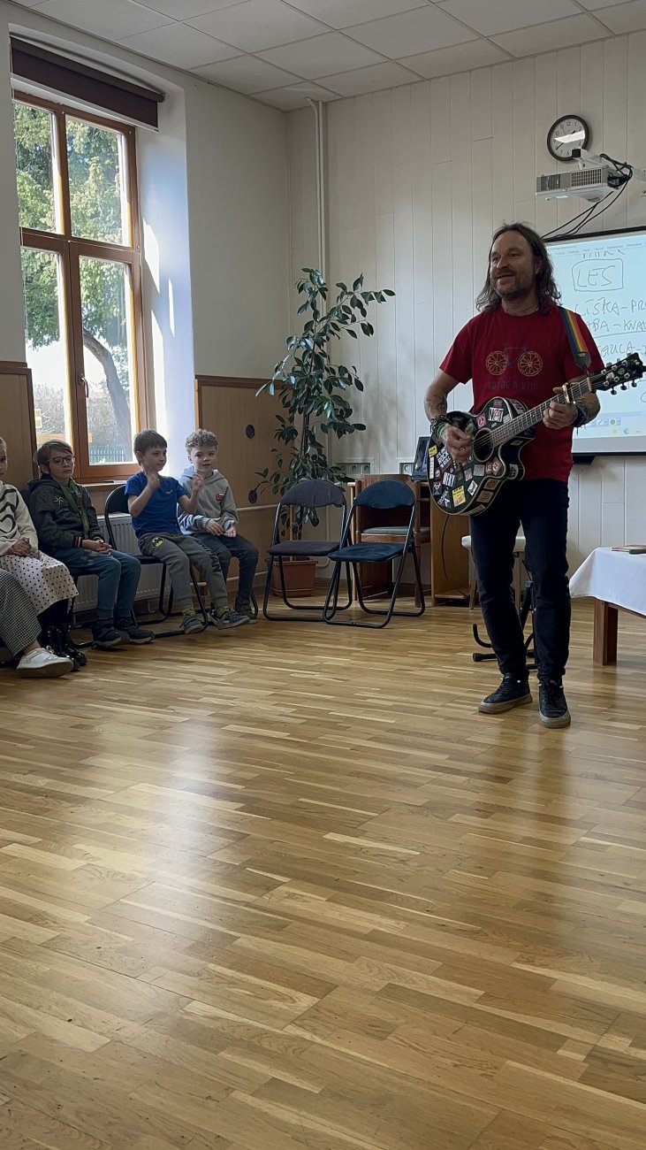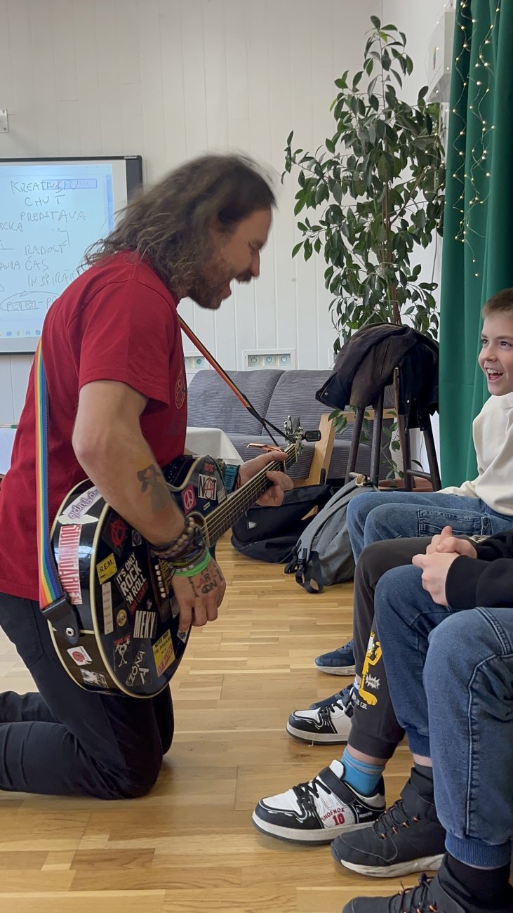 Pre deti zo základných škôl sme pripravili zábavnú besedu „Ako sa rodí kniha“ s Jánom Martonom. Deti zaujal a zabavil svojou gitarou, rozprávaním aj pútavým príbehom, ktorý nakoniec spoločne dotvorili samotné deti. Atmosféra bola plná fantázie, hudby a radosti z tvorenia.