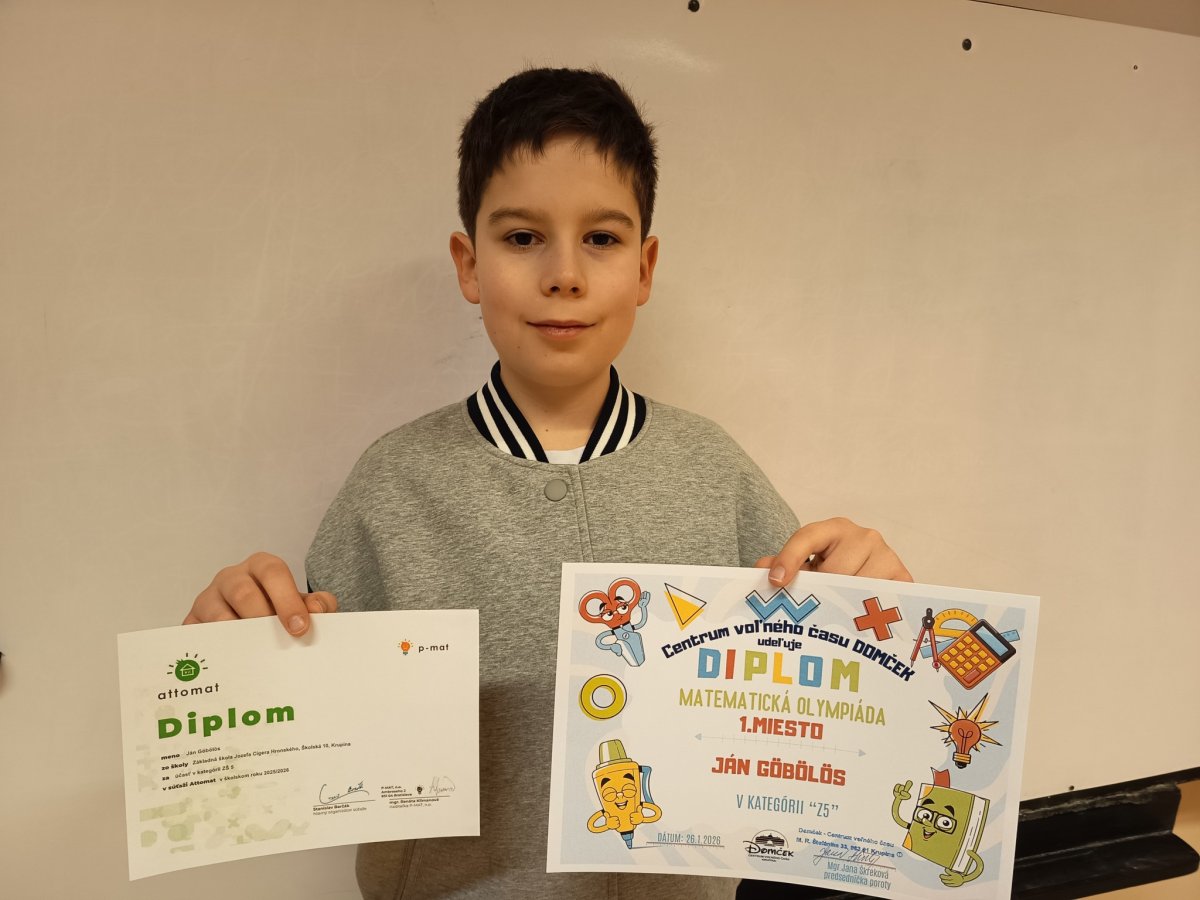 Dňa 26. 1. 2026 sa žiaci základných škôl zúčastnili okresného kola Matematickej olympiády. Súťaž prebiehala v dvoch kategóriách podľa ročníkov – Z5 a Z9.